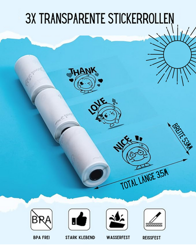 Mit dem tintenlosen Mini Drucker hast Du alles, was Du benötigst, um schnell und einfach Stickers, Labels, Unterrichtsmaterialien und mehr zu drucken! Die App ermöglicht es Dir, den Drucker ferngesteuert über dein Smartphone zu betätigen, damit Du den Lernprozess vereinfachen und die Kreativität beflügeln kannst.